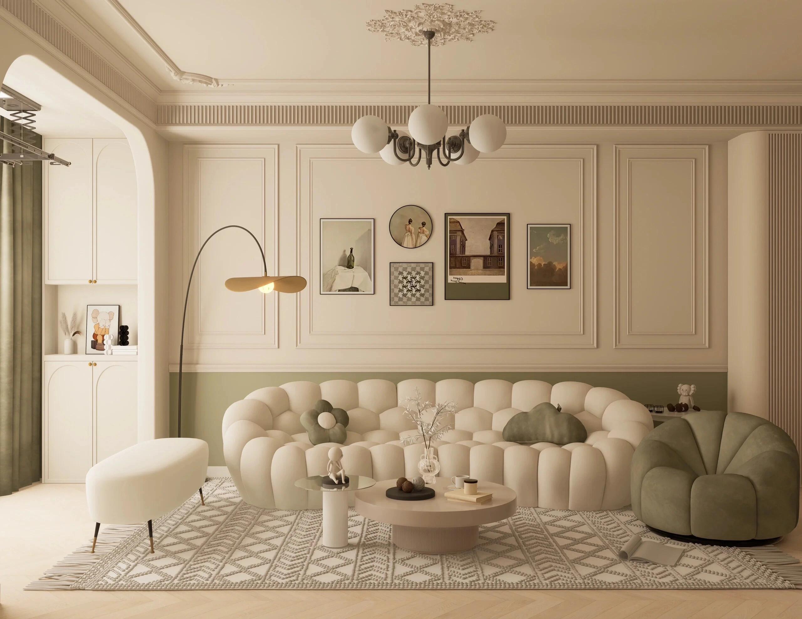 奶油色系+法式PU線條,既有奶油風(fēng)的溫柔隨性,又有法式的復(fù)古和質(zhì)感
