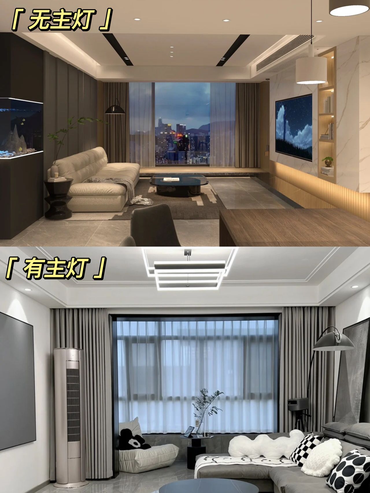 對于主燈的設計,其實就是一個非常兩極化的審美,這張圖可能有意無意的在試圖“丑化”有主燈,實際上只要燈光瓦數到了,根本沒有這么暗。