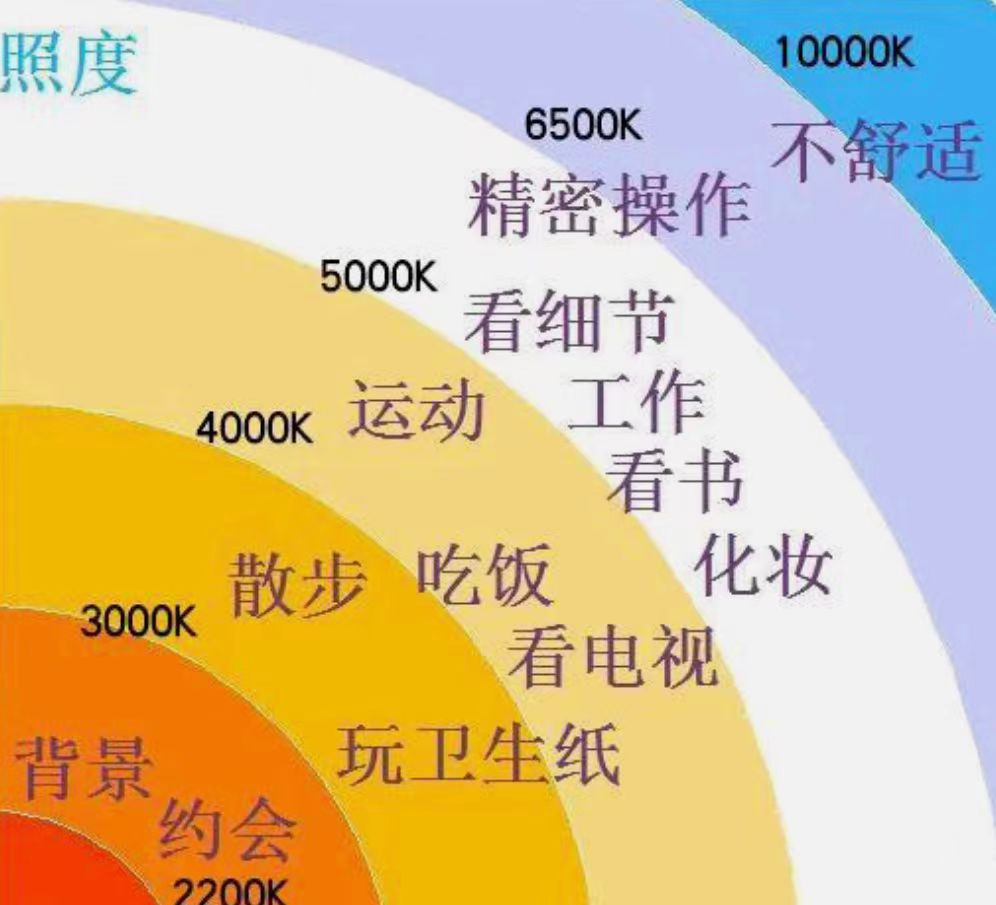 其次,照明必須滿足人的心理需求,如色溫、照度對人情緒的影響。